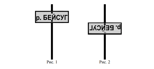 11. На столбе висела табличка (рис. 1). Верхний винт, державший табличку, выпал, и табличка перевернулась. Нарисуй, как будет выглядеть перевёрнутая табличка с надписью (рис. 2).