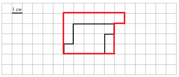5. 1) На клетчатом поле со стороной клетки 1 см изображён прямоугольник. Найди периметр этого прямоугольника.